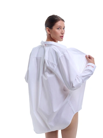 Белая базовая рубашка — обязательный элемент любого гардероба. Le Journal Intime решил разнообразить этот элемент одежды и впервые выпустил дроп белых рубашек с уникальными вышивками на манжетах. Оверсайз модели из плотного высококачественного хлопка дополнены фирменными красными надписями в стиле позиционирования бренда — Smart & Sexy. Это фразы-послания, подходящие под настроение и позитивный настрой: Gentle beast, My body keeps love, Love vibes.