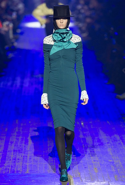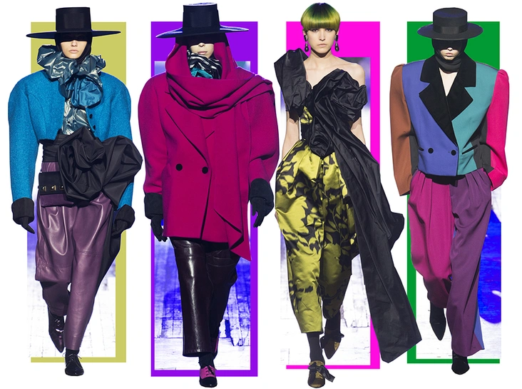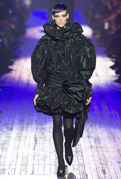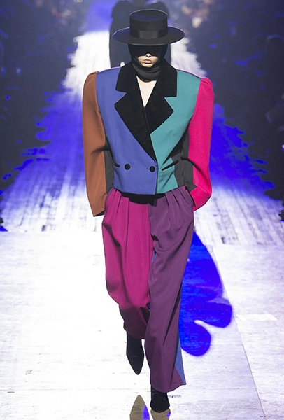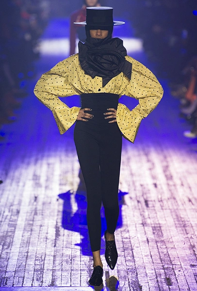 Но не спешите думать, что эта коллекция лишена актуальности. Конечно, никто не будет спорить, что в эпоху быстрой, утилитарной моды, наряд – это месседж или даже вовсе его отсутствие, — но не перформанс. Может быть, именно поэтому Джейкобс обращается к 80-м годам и творчеству «реаниматоров» кутюра Ива Сен-Лорана, Тьерри Мюглера, Клода Монтаны и Пьера Кардена? Подобно тому, как Донателла Версаче из своего прошлого показа сделала трибьют покойному брату Джанни, Марк Джейкобс воздает должное другим дизайнерам той эпохи, цитируя их бессмертное творчество. Ниже – самые яркие цитаты!