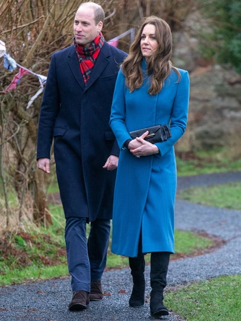 Кэтрин вышла из поезда в пальто цвета морской волны, в котором она многократно появлялась ранее, в том числе и когда была беременна принцем Луи и сочетала его с, пожалуй, самым любимым аксессуаром Миддотонов — меховой шапкой. Впрочем, в отличие от упомянутого норвежского тура, в этот раз Кейт обошлась без головного убора. На ней по-прежнему были сапоги Ralph Lauren Collection на высоком каблуке и черные перчатки из гладкой кожи. В руках герцогиня держала небольшой клатч черного цвета с выделкой под крокодила. Его авторство принадлежит шотландской марке Strathberry, и это новый предмет в коллекции Кэтрин.
