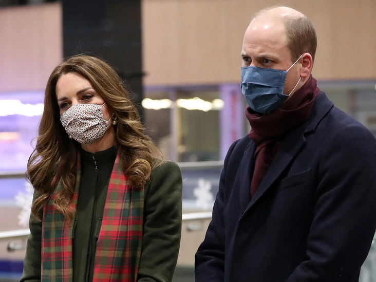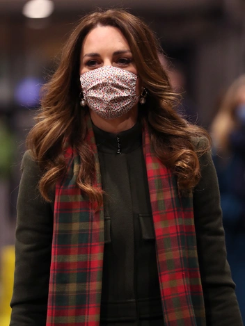 Деталью, которая намекнула бы на рождественскую атмосферу и дух приключений, стал клетчатый шарф шотландского производителя Lochcarron. Расцветка называется «кленовый лист», и аксессуар уже видели на Кейт во время ее визита в Канаду в 2016 году. Также на герцогине были жемчужные серьги — их иногда можно было разглядеть за фирменной укладкой Кэтрин с деликатными волнами. По некоторым предположениям, это бижутерия. Ну и, конечно же, на обоих супругах были маски. На Уильяме — простая синяя, на Кейт — с милым флоральным принтом из ткани культового универмага Liberty of London.
