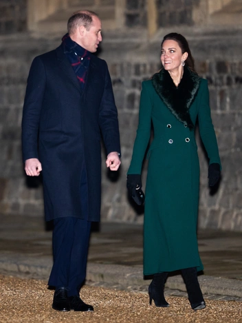 Королева появилась на ступенях замка в алом ансамбле с шляпкой Angela Kelly и нарядным шелковым платком. А на Кэтрин было еще одно пальто Catherine Walker из ее коллекции — двубортная темно-зеленая модель, которую уже видели на Кейт в марте во время их с Уильямом визита в Ирландии. В этот раз к пальто добавили воротник из искусственного меха Troy London. Дополнением стали вечерний клатч Alexander McQueen с крупным камнем-застежкой и серьги из коллекции Ее Величества.