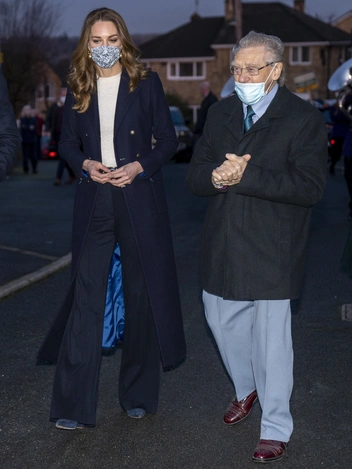 Затем супруги отправились в Бэтли — населенный пункт в Западном Йоркшире. Там Уильям и Кейт должны были посетить местный общественный центр, чтобы встретиться с волонтерами, которые поддерживают пожилых людей в этом сообществе. Визит получился весьма трогательным, как как Кэтрин увиделась с 85-летним Леном Гарднером, с которым, благодаря Королевской волонтерской службе, она несколько раз созванивалась за время локдауна. Кембриджские прошлись с джентльменом от общественного центра до его дома, где Гарднер представил чете свою жену. По дороге их сопровождал духовой оркестр The Brighouse & Rastrick.