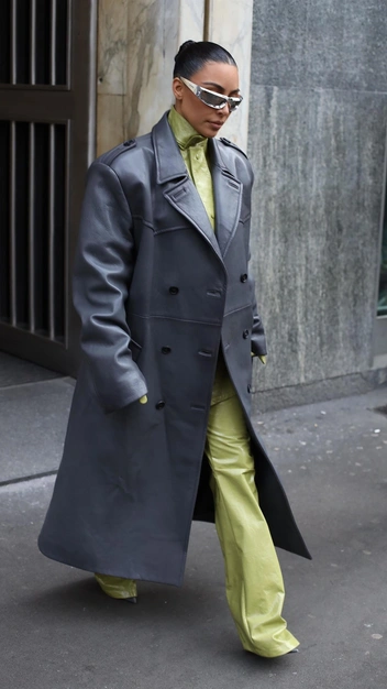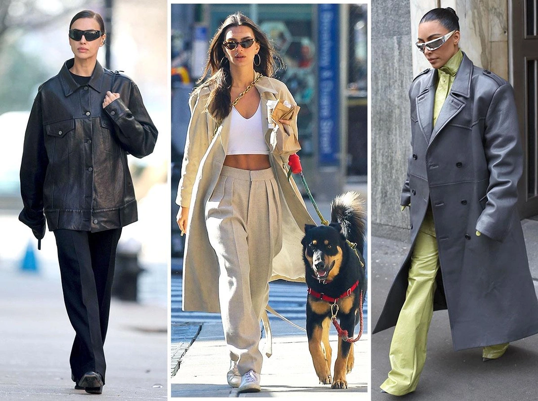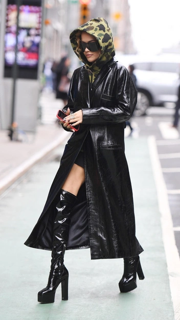 Кожаный плащ выбирают самые смелые женщины: Ким Кардашьян, Кайли Дженнер, Рита Ора, Джиджи Хадид и Ирина Шейк. С таким предметом одежды вы будете чувствовать себя властно и стильно, так как кожа считается самым модным материалом прямо сейчас. Он может повторять крой тренча или же быть на манер строгого черного плаща из 90-х, который носили стильные мужчины того времени.