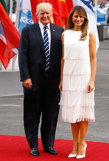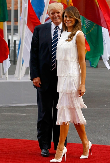 Еще один отличный коктейльный наряд Трамп продемонстрировала в начале июля в Гамбурге, когда лидеры стран «Большой двадцатки» отправились на концерт в Эльбскую филармонию (ту самую, где в начале декабря прошел показ коллекции Chanel Métiers d’Art). Белое платье с бахромой в стиле «ревущих» 20-х для Мелании сшил еще один ее любимый дизайнер — Майкл Корс. Да и стоит оно сущие копейки по меркам первой леди — всего каких-то три тысячи долларов (около 180 тысяч рублей).