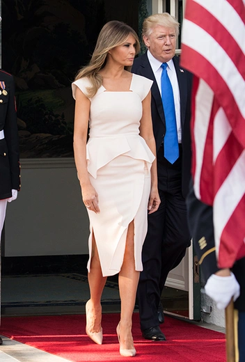 В конце июня, принимая в Белом доме высоких гостей из Южной Кореи, президента Муна Джэина и его супругу Ким Джонсук, Мелания продемонстрировала, пожалуй, лучшее коктейльное платье из своей огромной колллекции.