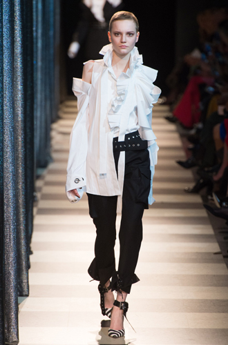 Однако если утопать в рюшах вариант не для вас. Можно легко повысить градус игривости, добавив к повседневному образу одну вещь с оборками. За примерами идем к Giambattista Valli, Alexander McQueen, Jacquemus.