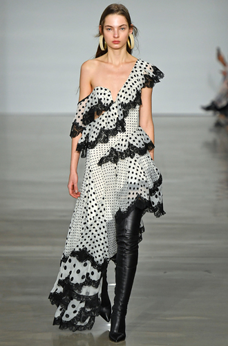 К слову, множество воланов на юбке, напоминающих волны или лепестки цветов – сдержанный реверанс в сторону прошлого. Подобная отделка стала популярна в средние века, являясь средством создания объема на нижних юбках, а затем бурно развивалась в эпоху Возрождения, перекочевав на верхние юбки, где стала самодостаточным элементом дизайна. Превратиться в такую вот «кисейную барышню» можно, например, в платьях осенне-зимней коллекции Alice + Olivia.