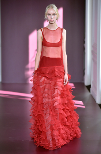 Правда, в осенне-зимних коллекциях откровенное безумие оборок осталось, в основном, в вечерних вариантах. Им отдает дань Пьерпаоло Пиччоли в своей кутюрной коллекции, Alberta Ferretti создает нежнейшие наряды в пол, усиливая тренд цветовой гаммой, а Мария Грация Кьюри выпускает черные платья из множества оборок ближе к финалу шоу Christian Dior.