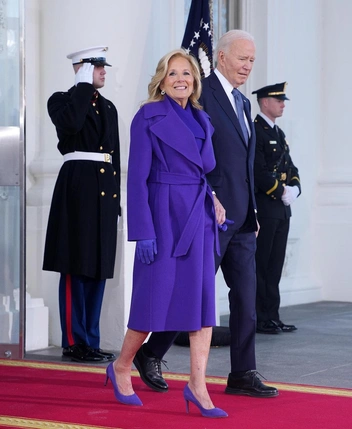 Один из этапов инаугурации — это прибытие президента с супругой в Белый дом, чтобы принять участие в чаепитии с четой, которая правила страной до этого. Такой жест является показателем мирной передачи власти и согласия сторон с результатами выборов. Для встречи с Меланией и Дональдом супруга Джо Байдена предпочла фиолетовый цвет — и тут тоже есть место символизму. Во-первых, фиолетовый издавна считается оттенком власти, так как многие века назад его было позволено носить только монархам и их приближенным. Так что выбор аутфита бывшей первой леди натолкнул на мысль о том, что она не согласна уступать, даже после победы соперника. А во-вторых, фиолетовый при некотором световом освещении напоминает синий, а это — цвет Демократической партии.