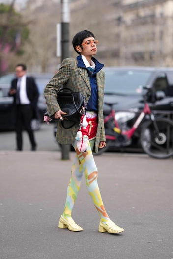 Цветные колготки всегда были в модной повестке, но в последние годы особенно активно заполнили эфир. Началось все зимой несколько лет назад, что легко объяснить: именно в холодный сезон наши образы кажутся нам «скучными» и мы хотим разбавить их ярким акцентом. А кроме того, колготки — аксессуар для холодной погоды, поэтому с ноября по март они были особенно актуальны.