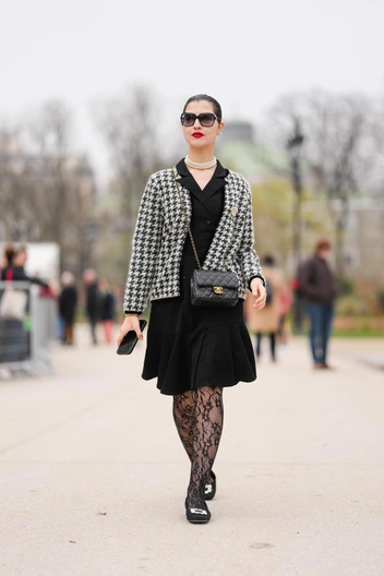 Настроения бренда Chanel с его романтичными белыми колготками подхватили и другие бренды, так что в моде в 2025 году будет кружевной вариант. Выбираем более мечтательные в белом цвете, или сексуальные черные, идеально подходящие для вечернего образа.