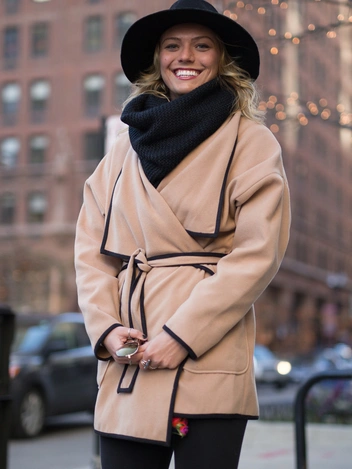Пальто-халат черного или серого цвета, а также в оттенке кэмел — классика вне времени. Но такая модель должна соответствовать нескольким характеристикам, чтобы быть способной противостоять моде. Во-первых, это качественный материал, который действительно не потеряет своего вида через несколько лет. Во-вторых, длина. Стильное пальто на запах обязательно должно быть ниже колена, а лучше доходить до щиколотки (читайте также: Хит сезона: 5 признаков самого стильного весеннего пальто — проверьте свой гардероб).