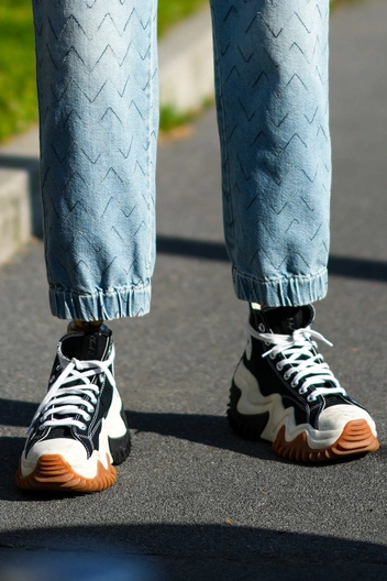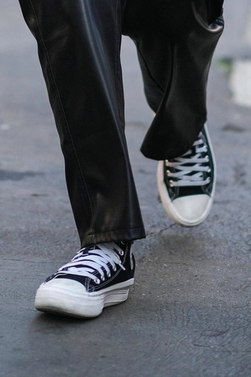 Минималистичные кеды на плоском ходу — вещь довольно универсальная. Но в современных модных реалиях такая обувь простит образ. Особенно, если это не фирменная и узнаваемая модель, вроде Converse или Vans. Точно не стоит носить такие кеды вместе с романтичными платьями и джинсами. Получится скучный и унылый образ, который не спасут даже яркие аксессуары и украшения. А если вы поклонник оверсайза, то такая обувь, скорее всего, потеряется за брюками и джинсами свободного кроя, а ваша нога будет выглядеть крошечной.