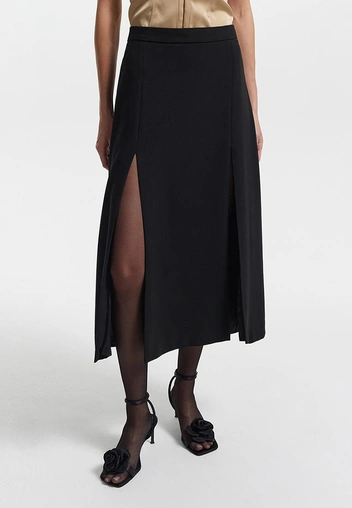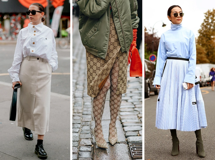 Платья и юбки с вырезом по ноге не только смотрятся эффектно и соблазнительно, но и помогают скорректировать фигуру. Вырез по ноге делает ноги более стройными и длинными. К такой юбке стоит подбирать нюдовую обувь, минималистичные босоножки, мюли или классические лодочки, а также сапоги или ботфорты. Осенью и зимой будут актуальны модели длины миди и макси из денима, кожи и трикотажа (читайте также: Как носить юбки, чтобы не выглядеть нелепо и немодно в 2022 году: главные запреты и удачные сочетания).