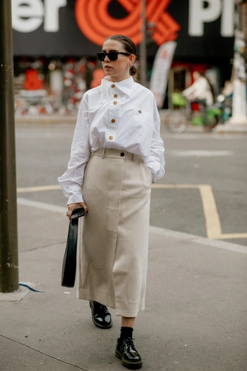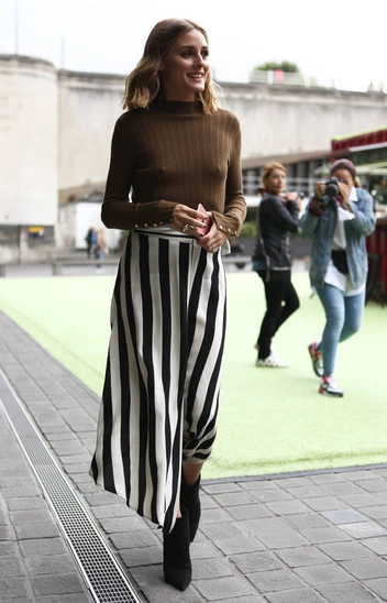 Женственную юбку-карандаш обожают многие fashion-инфлюенсеры и звезды. Такая юбка всегда смотрится стильно и эффектно, а также помогает подчеркнуть талию и уменьшить бедра. Выбирайте модель слегка ниже колена, без рисунка или объемного декора. Лучше всего подойдет однотонная черная модель или юбки темных и приглушенных оттенков. Это идеальный выбор на осенне-зимний сезон, который в сочетании с джемпером или водолазкой, а также лодочками на каблуке, поможет зрительно вытянуть силуэт и удлинить ноги (читайте также: Удлиняют ноги и стройнят: как носить модные брюки палаццо в любом возрасте — 6 лучших сочетаний).