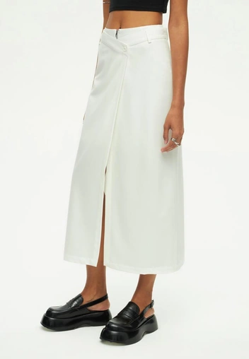 Вещи с акцентом на талии традиционно стройнят фигуру. Сейчас в моде правит оверсайз, а потому так легко потеряться за бесформенными вещами. Чтобы избежать этого, выбирайте юбки на запах: благодаря такому крою вы подчеркнете тонкую талию и скроете широкие бедра. Лучше отдать предпочтение монохромным моделям, а также юбкам из не слишком плотного материала, дабы избежать дополнительного и нежелательного объема.