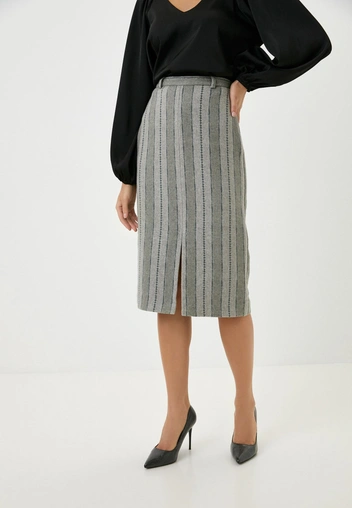 Один из самых проверенных и востребованных приемов в стайлинге, позволяющий зрительно вытянуть силуэт и скорректировать объемы, — вещи в вертикальную полоску. Это может быть крупный или мелкий принт, а также черно-белая гамма или разноцветный набор. Юбка в полоску поможет разнообразить гардероб, сделав образы более интересными и броскими. Поддержать такой предмет гардероба поможет спокойный верх: объемный свитер, жакет или кардиган.