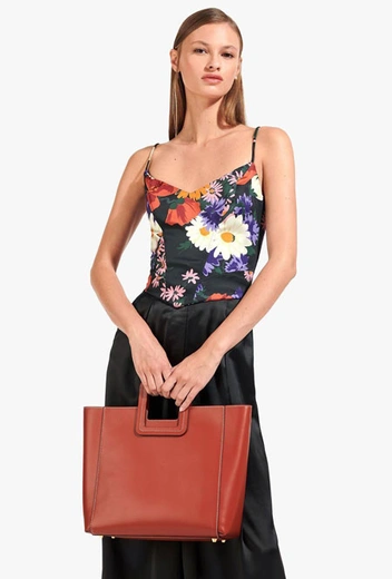 Калифорнийский бренд Staud был основан Джорджем Аугусто и Сарой Штаудингер в 2015 году и уже давно завоевал сердца стритстайл-блогеров, которые регулярно появляются на неделях моды (фавориты инфлюенсеров – двойные модели Shirley с прозрачными чехлами из ПВХ и контрастными ручками). Но Зеленская показала, что такие современные и необычные сумки выглядят уместно и в гардеробе первой леди. Супруге украинского президента больше всего приглянулся классический вариант карамельного оттенка с короткими ручками – с этой сумкой-тоутом она появлялась дважды.