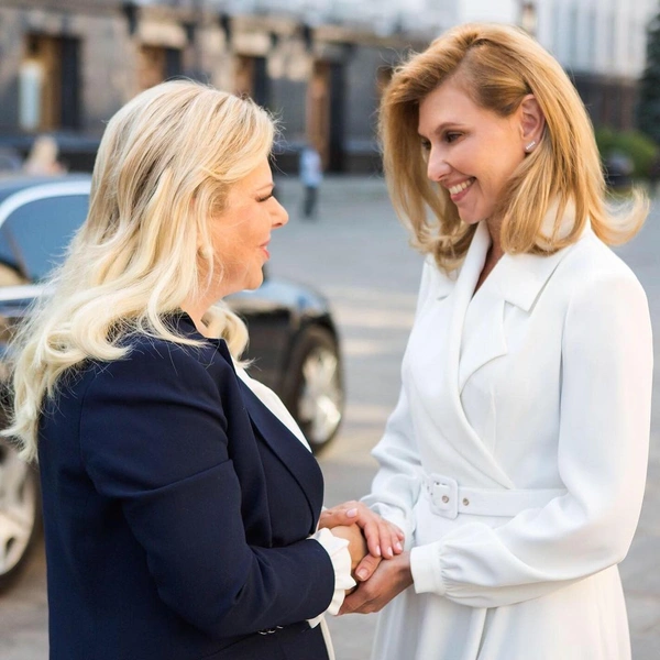 Во главе довольно известного среди украинских селебрити бренда Dafna May стоит Дафна Майберг. Дизайнер получила образование в Regent’s University London, а после десяти лет жизни в Лондоне решила вернуться на родину. В основе коллекций Дафны – легкие и романтичные вечерние и коктейльные платья. Не удивительно, что в коллекции Dafna May Зеленская выбрала именно такой вариант – белое макси-платье на запах с воротником и ремешком в тон. В таком наряде Зеленская отправилась на встречу с Сарой Нетаньяху, женой премьер-министра Израиля, и выглядела очаровательно.