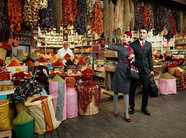 Для запуска нового дизайна формы национальный перевозчик Турции привлек всемирно известного британского фотографа и художника Майлса Олдриджа (Miles Aldridge), который сфотографировал новую коллекцию униформы Turkish Airlines в уникальных местах Стамбула.