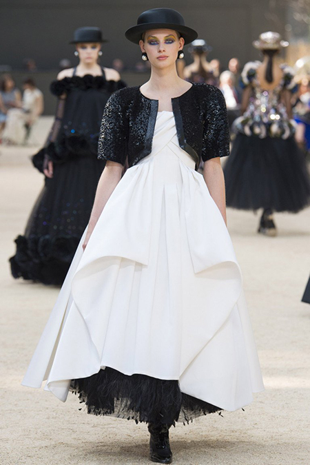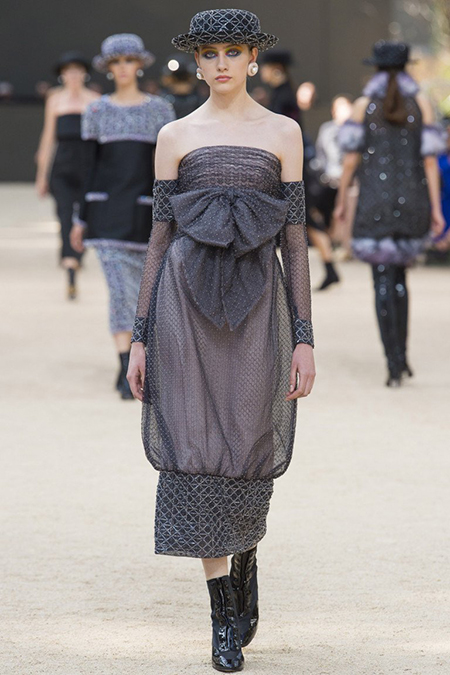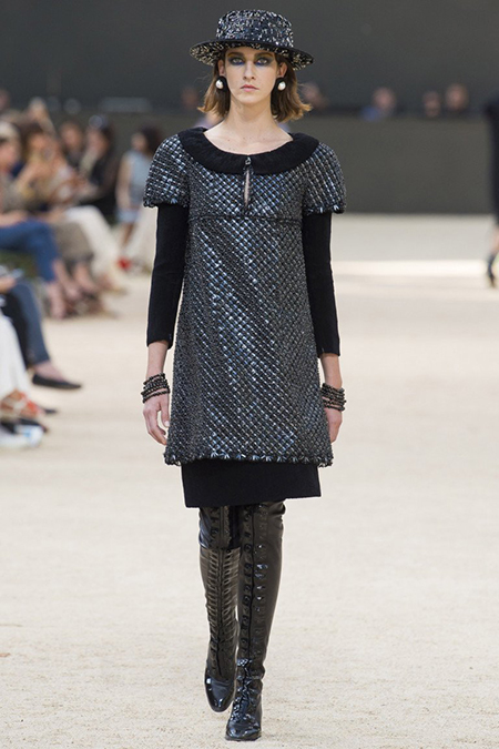 Эйфелева башня стала главной «приглашенной звездой» показа. Нет, не настоящая (хотя в то, что маэстро мог бы при желании провести шоу под сводами реальной Tour Eiffel, не так уж сложно поверить). Специально для Chanel был создан муляж творения Густава Эйфеля, который украсил один из залов Гран Пале, где и была показана коллекция.
