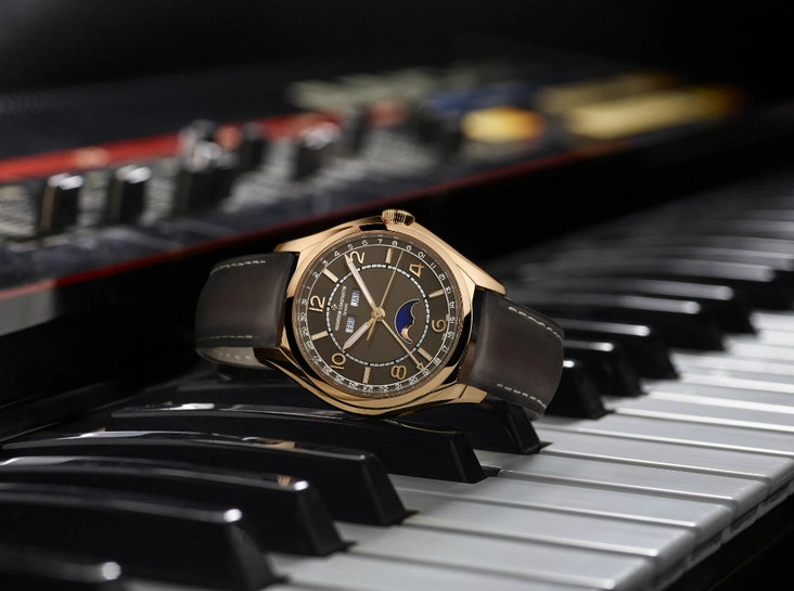 Модель демонстрирует собой новое прочтение стиля ретро, а циферблат нового оттенка сепии и ремешок из телячьей кожи коричневого цвета подчеркивают ее винтажный характер.