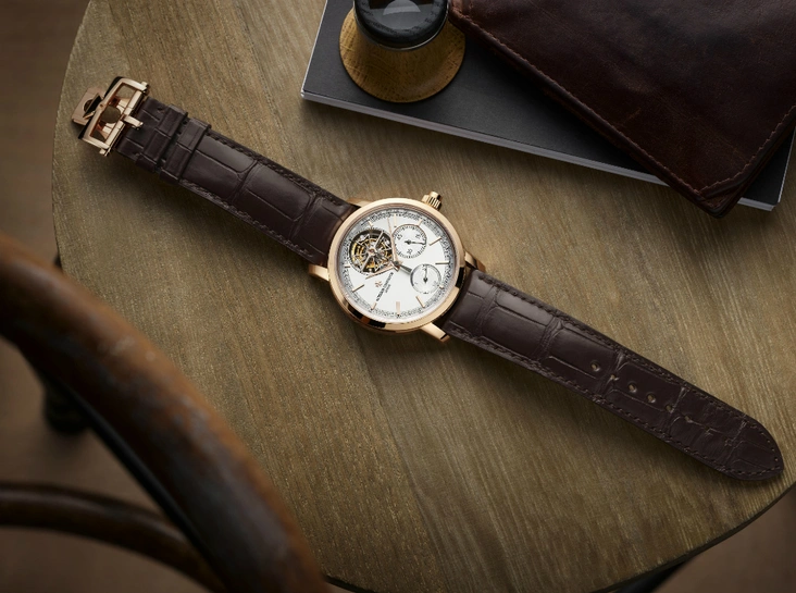 Новая модель Traditionnelle с функцией хронографа и турбийоном — современное выражение великих часовых традиций Женевы. В ней сочетаются точность однокнопочного хронографа и изысканность турбийона, усложнения, воплощающего благородство Высокого часового искусства. Эта модель — неотъемлемая часть многовековой часовой культуры, сочетающая в себе техническое совершенство и элегантность классических часов.
