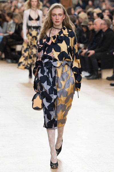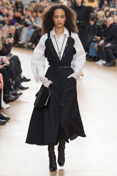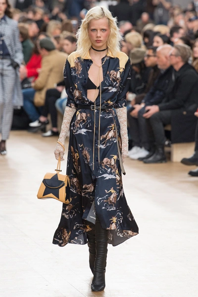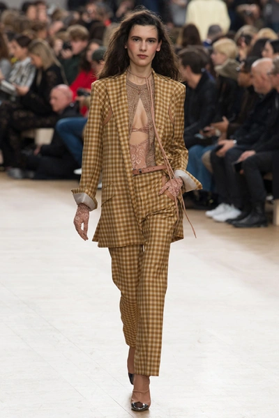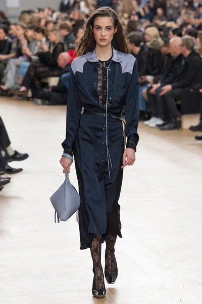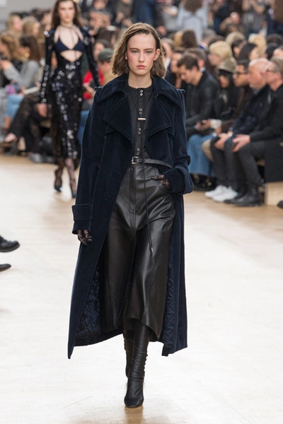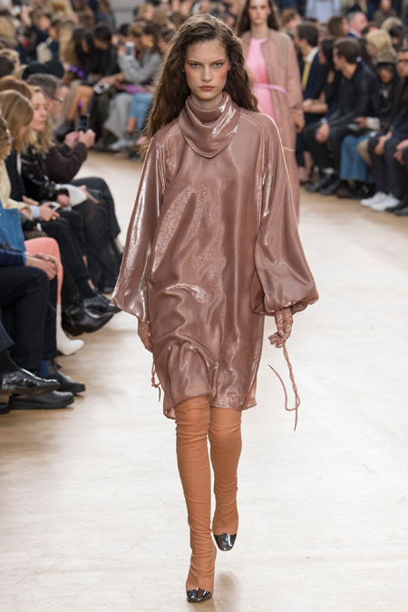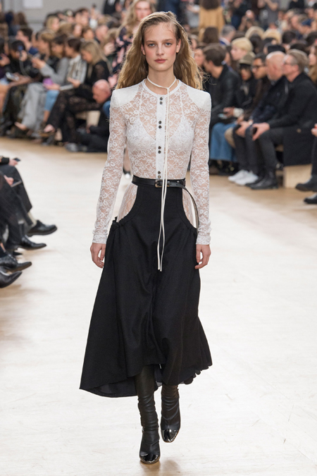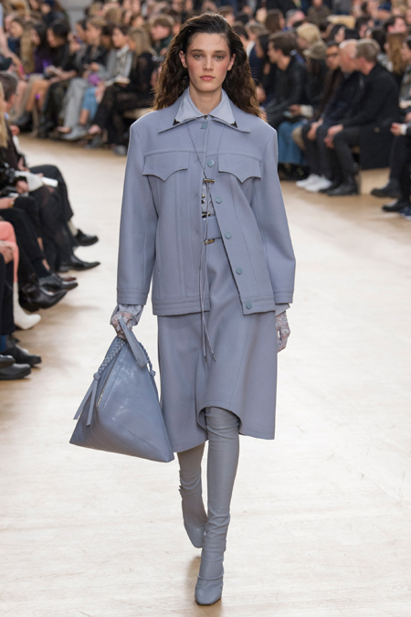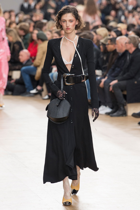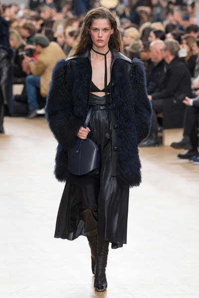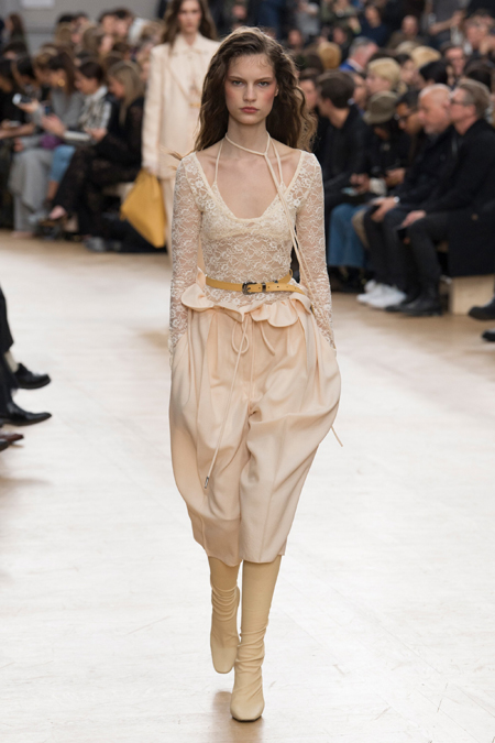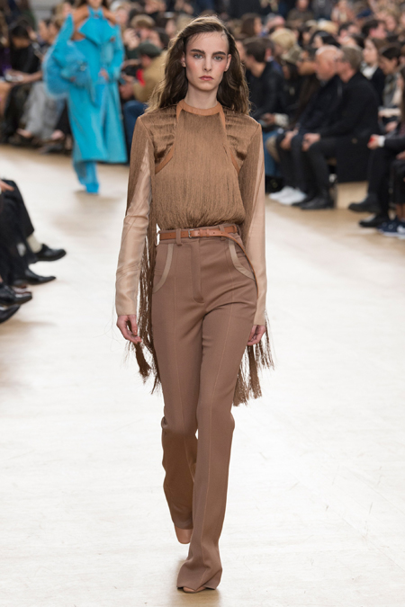 Креативный директор Nina Ricci Анри Гийом смиксовал в осенне-зимней коллекции три, казалось бы, бесконечно далекие друг от друга темы: эстетику дикого Запада, агрессивную сексуальность 80-х и романтический аскетизм XVII века. При этом никуда не исчезла крепко слитая с ДНК бренда «истинно французская» элегантность.