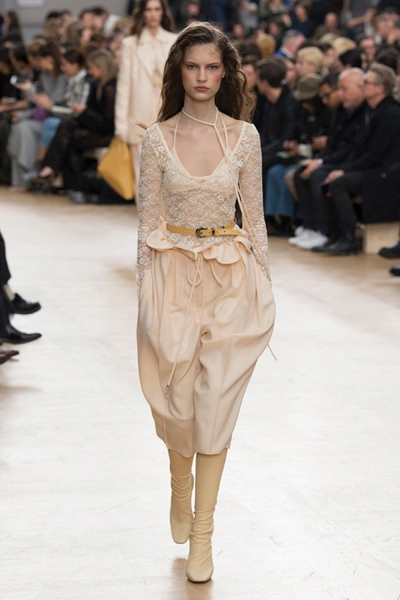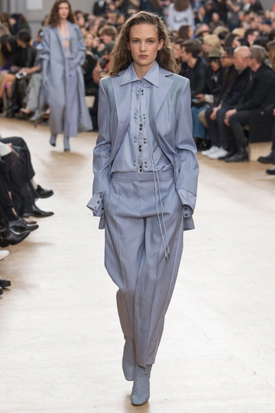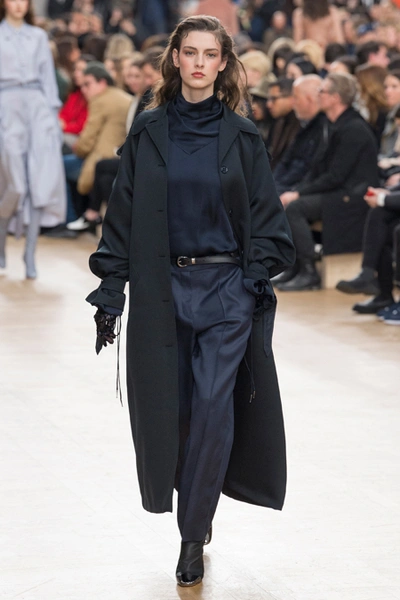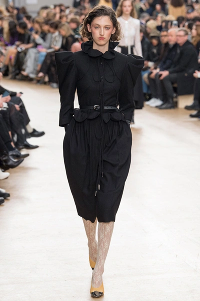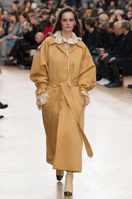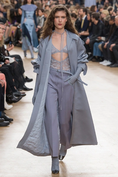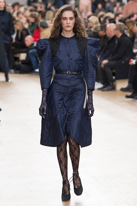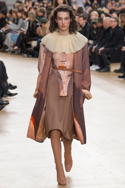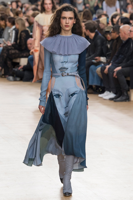 Благодаря четко выдержанным цветам, третья тема, - XVII век с его мрачноватой живописью, - вписалась в общую картину невероятно органично. Платья с большими манишками, как у вельмож той самой эпохи, и объемные пальто украшали принты-портреты, будто сошедшие с полотен. А полупрозрачные облегающие кружевные блузы на показе дополняли укороченные широкие брюки – еще один реверанс в сторону мужской моды начала Нового времени.