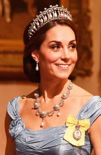 Одно из самых заметных украшений принцессы Дианы — ее любимая тиара «Узелки любви», которую иногда также называют «Кембриджской тиарой». Дебютный выход принцессы в этом произведении ювелирного искусства состоялся в апреле 1983 года на мероприятии в Новой Зеландии через пару лет после свадьбы. Не удивительно, что эта жемчужная тиара стала любимым украшением герцогини Кембриджской. И именно этот предмет из коллекции Уэльской (если не считать, конечно, помолвочного кольца) Кейт носит чаще всего (читайте также: Диадемы для герцогини: все знаковые выходы Кейт в тиарах).