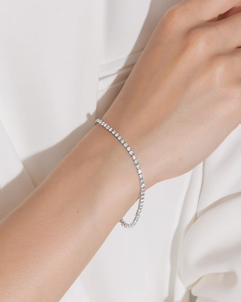 Украшение из белого золота или платины, инкрустированное бриллиантами, раньше носили только спортсмены высшего ранга. Культовым оно стало благодаря теннисистке Крис Эверт. Она не снимала его даже во время матчей, и на одном из них он слетел прямо с руки. Судья даже остановил игру, чтобы найти дорогое украшение. После такого необычного случая тонкий браслет из звеньев-бриллиантов стали называть «теннисным». Сегодня его носят не только любители самого благородного вида спорта, но и поклонницы изящных элегантных украшений.
