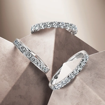 Еще одно украшение, которые будет сопровождать вас всю жизнь и сохранять воспоминания о том важном свадебном дне — обручальное кольцо. Если мужчины традиционно выбирают классические модели, то любовь девушек — это бриллиантовые дорожки: сверкающие, с бриллиантами по кругу или только на верхней части кольца, они гармонично дополняют помолвочное кольцо.