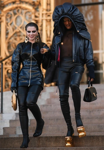 Такие фасоны призваны добавить драматичности, но могут вызывать комический эффект. Имеются в виду увеличенные до невероятных размеров аксессуары, элементы одежды, несоотносимые с самой моделью, которая демонстрирует наряд, и прочие явные преувеличения в виде длины рукавов и штанин. Добиться того же эффектного впечатления можно при использовании других драматических приемов. Например, массивность в противопоставление хрупкости, сочетание тканей разных фактур и использование геометричности в изделиях, четкость и структуру шитья. Стоит держать во внимании правила соразмерности, а при желании выбрать «макси», вместо «гипер».