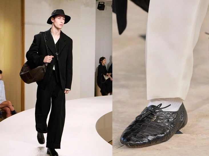 Теперь же тенденция окрепла окончательно, поэтому в моду вошли дерби, выполненные скорее на манер «джазовок» — специальной обуви, которую используют танцоры. Она полностью облегает стопу, имеет тонкую и мягкую подошву, а также небольшой каблук. Именно такой вариант в этом году предлагает носить Celine: они выпустили сразу несколько моделей, напоминающих обувь для танцев.