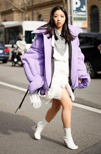 В холодное время года мы автоматически тяготеем к более темным и приглушенным оттенка. Однако дизайнеры и модные инфлюенсеры советуют обратное: пальто, дубленки, куртки и плащи должны быть ярких цветов. Чтобы такая верхняя одежда смотрелась стильно и гармонично, не стоит перегружать образ пестрой и черной обувью. Они перетянут на себя все внимание и начнут спорить с вашим цветным нарядом. Вместо черной обуви стоит остановить выбор на светлой: белой, бежевой или моделях пастельных тонов. Это могут быть ботинки, сапоги или кроссовки. Самые смелые модницы могут поэкспериментировать со своим аутфитом и выбрать контрастную по цвету обувь.