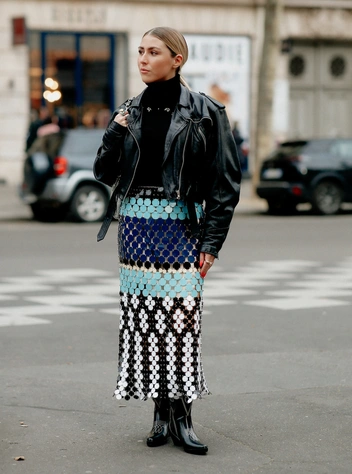 Любимая кожаная косуха никогда не выходит из моды. В сезоне осень-зима 2022/23 актуальны модели свободного кроя, а также куртки в винтажном стиле и укороченные. С такими можно сочетать джинсы и расклешенные брюки, носить платья и юбки. Из обуви лучше остановить внимание на ботинках на шнуровке, чтобы поддержать расслабленный и дерзкий стиль в образе, трендовые ботильоны на небольшом каблуке с квадратным мысом, а также челси или сапоги в стиле вестерн (читайте также: 5 главных ошибок при выборе кожаной куртки: от цвета до фасона).