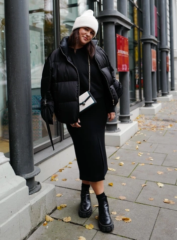Пуховик — одна из самых универсальных моделей верхней одежды на холодный сезон. Чтобы образы с таким предметом гардероба смотрелись стильно и современно, важно выбирать грубую или спортивную обувь. Лучше всего с объемным пуховиком будут смотреться высокие челси на платформе или тракторной подошве, привычные ботинки на шнуровке или кроссовки. Более смелым модницам понравится образ с обувью на каблуке — так носят Рианна, Белла Хадид и Кендалл Дженнер. Но это, скорее, выходной аутфит, чем рекомендация на каждый день.