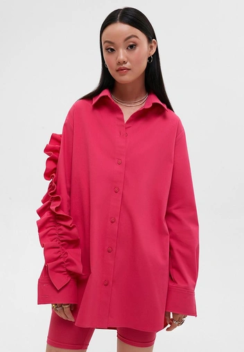 Оверсайз может быть как спасением для девушек с маленькой грудью, так и модным фиаско. Как носить такой крой правильно? Мешковатая одежда будет отлично смотреться в качестве верха, а вот излишний объем снизу нам не нужен. Кроме того, вещи должны быть закрытыми или же обладать молнией — так вам удастся избежать демонстрации утонувшей в оверсайзе зоны груди. Еще одним решением для трендового свободного лука будет ремень, носить который можно в паре с рубашкой, пиджаком или платьем.