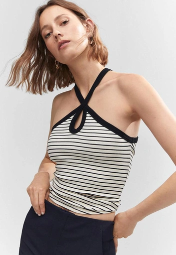 В этом сезоне, благодаря тренду на нулевые, халтер снова в тренде. Топ или платье с завязками на спине все чаще появляется в женском гардеробе, однако не спешите отправляться на шопинг. Такая модель визуально уменьшают грудную клетку и увеличивает плечи, так как создает вертикаль в верхней части фигуры. мы понимаем, что отказаться от модной одежды невозможно, поэтому предлагаем альтернативу: носите топ-халтер, но с горизонтальным принтом, который позволит сбалансировать пропорции.