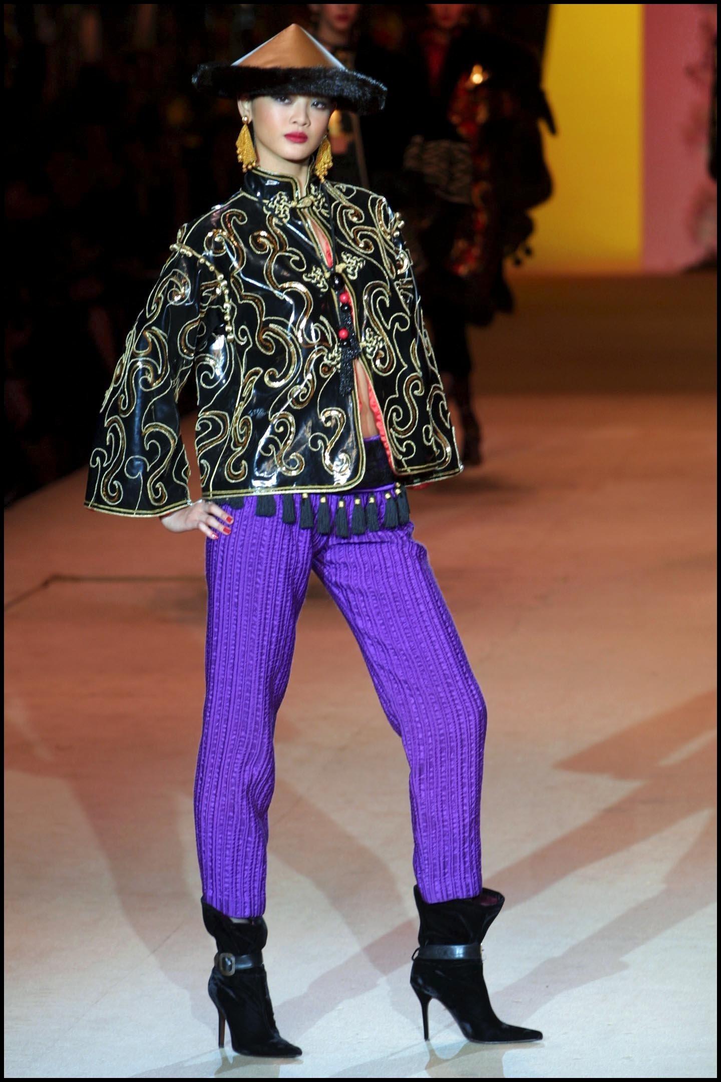 Справедливым будет признать, что именитые дизайнеры не раз использовали этот прием в своих коллекциях. Причем некоторые сделали это задолго до появления интернета. Например, Ив Сен-Лоран показал застежку-лягушку еще в 1977 году, на показе «Chinoises», вдохновленном Китаем. В 2001-м она отметилась на кутюрном шоу Jean-Paul Gaultier, отсылающем к той же стране. А из современных работ, вы наверняка могли видеть такие пуговицы в работах Джорджо Армани, который обращался к азиатской культуре на протяжении всего своего творческого пути.