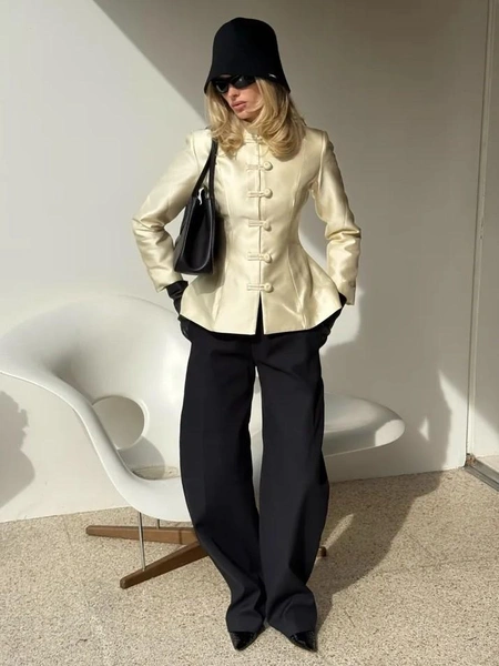 Сейчас фэшн-тренды нередко вспыхивают именно в соцсетях. Один из таких — мода на одежду с китайскими пуговицами, пришедшими к нам из традиционной китайской одежды. В прошлом году все охотились с за куртками и олимпийками в этом стиле — спасибо здесь стоит сказать Adidas с его азиатскими коллекциями. А теперь внимание интернет-модниц переключилось на акцентные пиджаки, готовые сделать стильным даже самый простой образ.