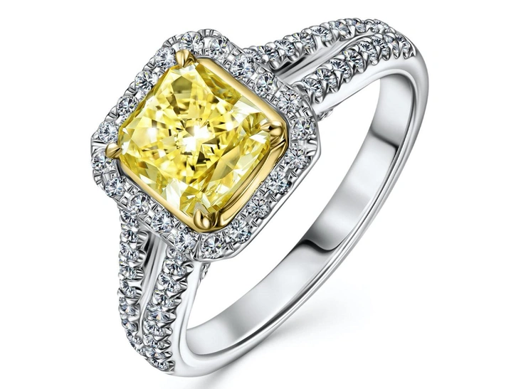 Кольца с бриллиантами лимонного оттенка
