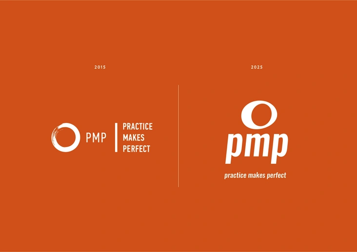 В этом году бренду РМР исполняется 10 лет. К этому событию сеть студий персонального тренинга по пилатесу и функциональному тренингу решила переосмыслить свое позиционирование. Новый логотип и графическая система подчеркивают устойчивость, структурность и внутреннюю ясность. Цветовая палитра осталась той же: глубокий черный, чистый белый и тёплый акцентный цвет ginger. Типографика выстроена строго и лаконично: шрифты Circe и Oswald задают темп и пространственный ритм. В центре — неизменная формула practice makes perfect. Только теперь она звучит тише, но глубже — как настоящий манифест взрослого бренда.