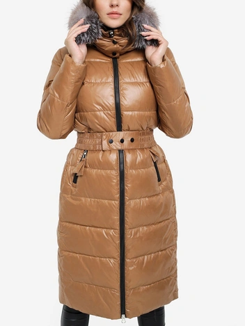 Пуховик с ремнем и капюшоном