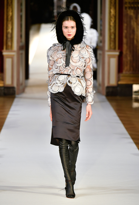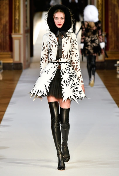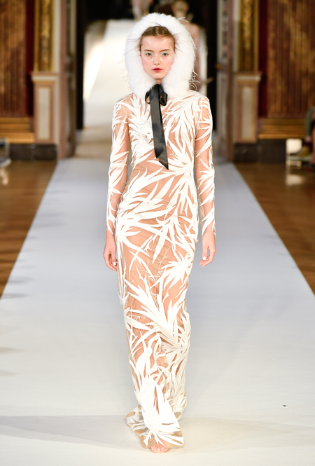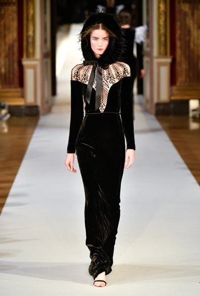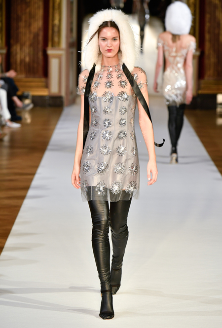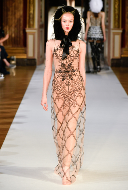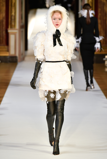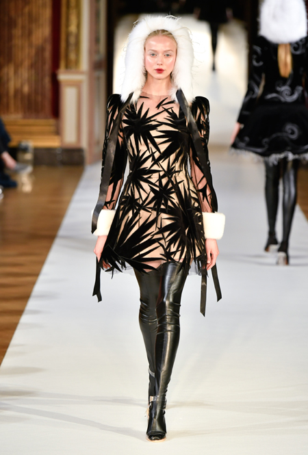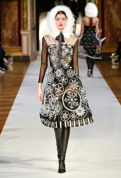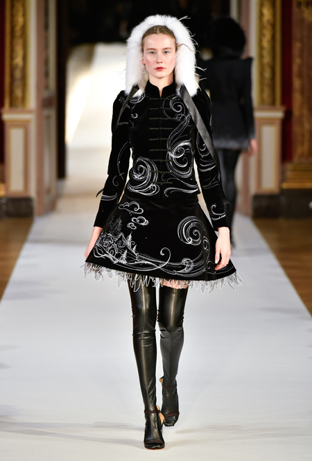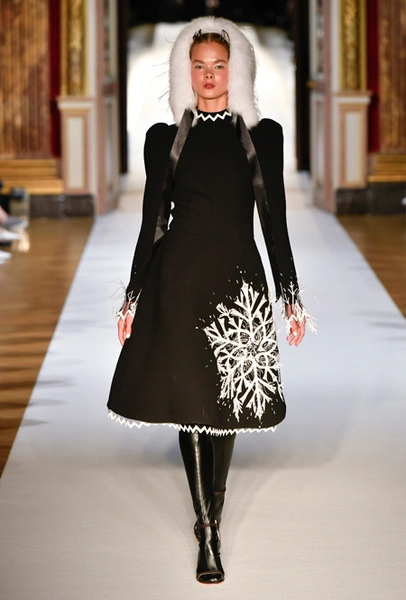 На Неделе haute couture в Париже высадился русский десант. Причем, то, что это коллекция дизайнера из России, было ясно и без объяснений. Юлия Янина сделала ставку на детали и отделку, вызывающие ассоциации с северной зимой. Жакеты в коллекции, словно сшиты из гигантских снежинок. Снежинки, будто вырезанные из бумаги, украшают подолы бархатных (и не только) платьев, а серебристыми снежинками расшиты облегающие платья из полупрозрачной ткани. Главный аксессуар – объемные шапки с меховой оторочкой, которые завязываются под подбородком.
