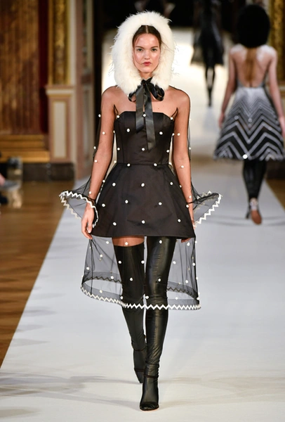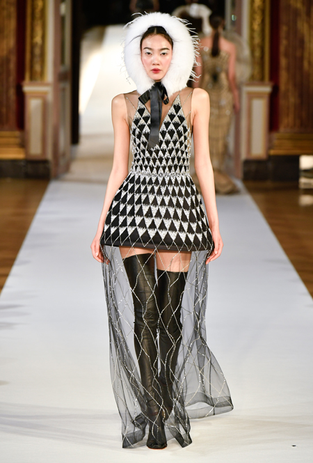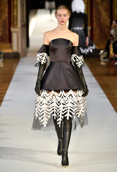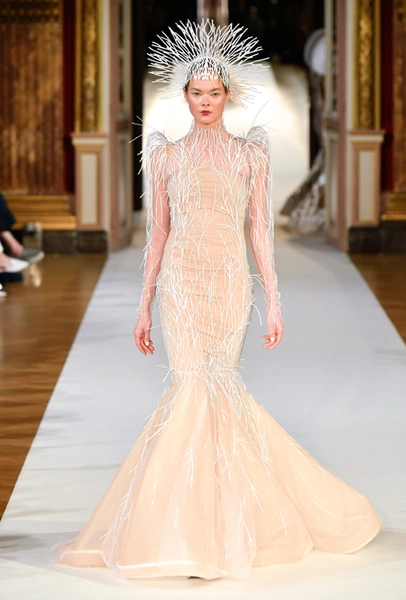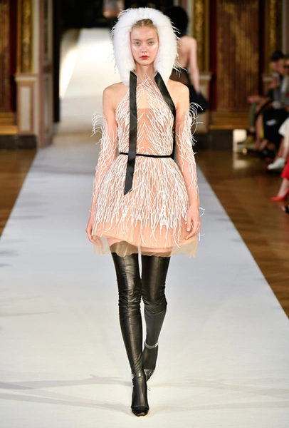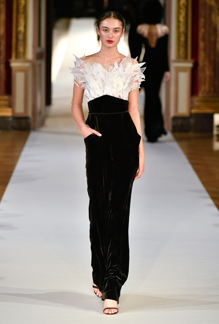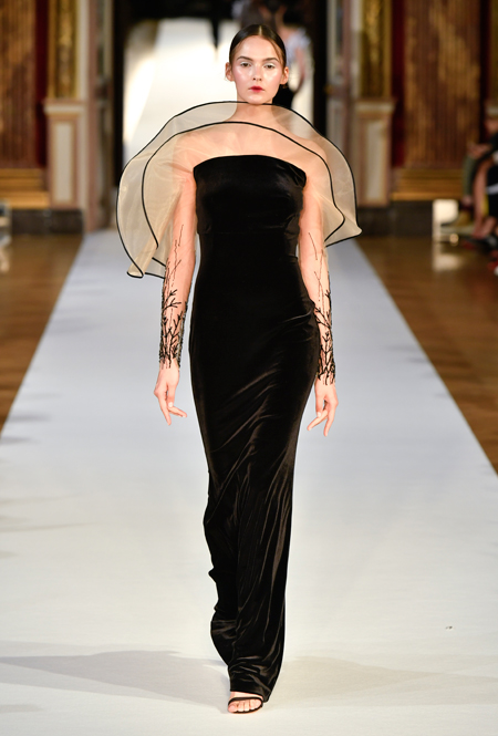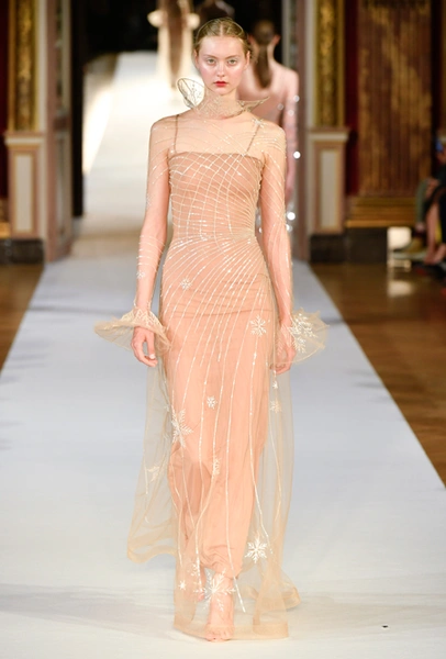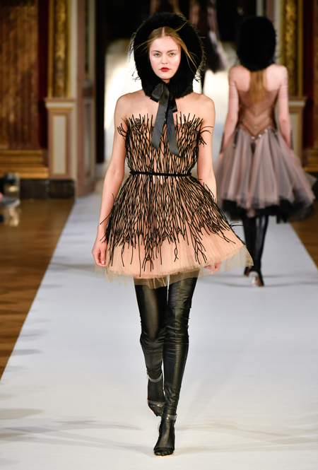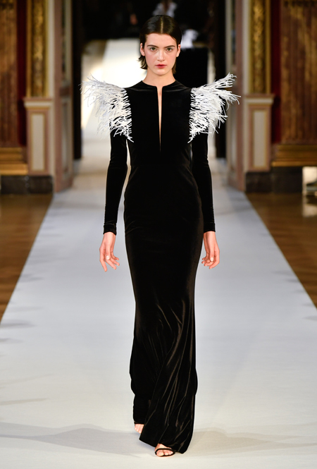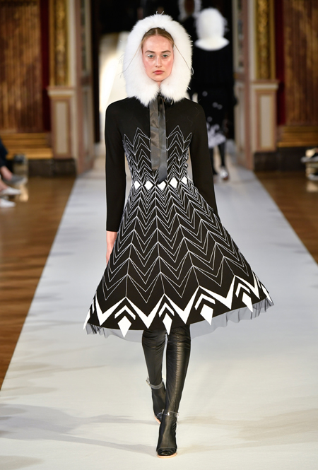 На Неделе haute couture в Париже высадился русский десант. Причем, то, что это коллекция дизайнера из России, было ясно и без объяснений. Юлия Янина сделала ставку на детали и отделку, вызывающие ассоциации с северной зимой. Жакеты в коллекции, словно сшиты из гигантских снежинок. Снежинки, будто вырезанные из бумаги, украшают подолы бархатных (и не только) платьев, а серебристыми снежинками расшиты облегающие платья из полупрозрачной ткани. Главный аксессуар – объемные шапки с меховой оторочкой, которые завязываются под подбородком.