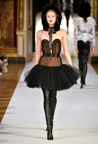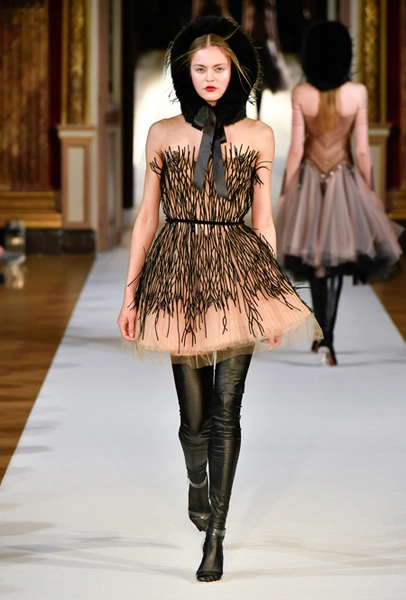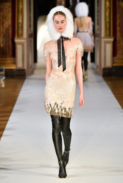 Впрочем, сама Юлия признается, что ее музой стала не русская Снегурочка, а датская Герда. Дизайнер посвятила показ знаменитой сказке Андерсена о Снежной королеве. Графичные платья с широкими плечами и кожаные чулки пришлись бы вкусу Маленькой разбойнице, живи она в наше время, романтичные приталенные платья с пышными юбками оценила бы Герда, а светло-бежевые, отделанные серебром, слюдой и стеклярусом, подошли бы неприступной Снежной королеве, будь она московской светской львицей.