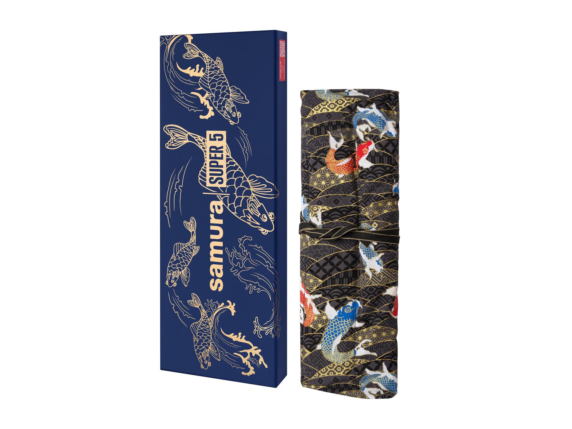 Главный герой трио — шеф-нож Santoku с лезвием 182 мм: универсальный формат для максимального количества кулинарных манипуляций. Его дополняют многофункциональный универсальный нож и японский топорик Nakiri, созданный специально для шинковки овощей и фруктов. Рукояти выполнены из микарты — премиального композитного материала, который обеспечивает надежный хват и комфорт: ножи буквально становятся продолжением руки. Набор упакован в подарочную коробку и тканевый чехол Japanese knife roll. Это делает Super 5 эффектным подарком для тех, кто воспринимает готовку как стиль жизни.