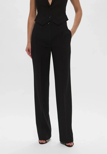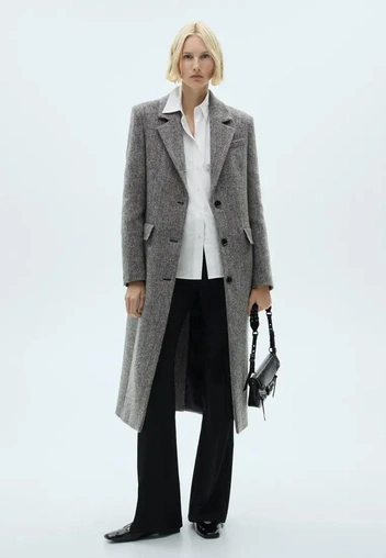 Пример 2 офисный: шерстяное пальто макси + пиджак + брюки палаццо + ботильоны + лаконичная сумка тоут.