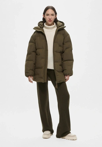 Теплый пуховик для морозов ниже -15 градусов. Актуальны модели без лишнего объема, лаконичные, можно с кулиской и приталивать ей силуэт, с высококачественным наполнителем и мембранной технологией. Цвет выбирайте нейтральный: матовый черный или глубокий оливковый. Он будет выигрышно смотреться и с грубыми ботинками и с элегантными сапогами на каблуке.